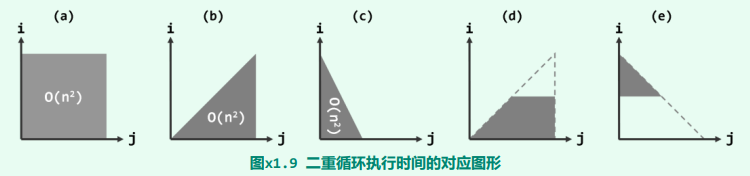 此处内循环的控制变量 j 尽管是在 内按算术级数递增,但步长并不固定。具体地,第 i 轮内循环采用的步长即为 i,故需做 n/i 次迭代。于是,所有循环的累计迭代次数为: