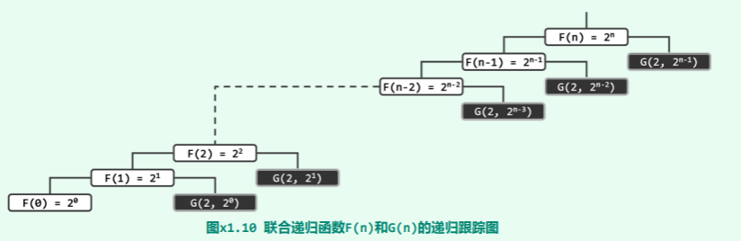 同样地请注意,G()最大的递归深度为 。这就意味着,递归深度将随着 m 的扩大急剧增加,故在实际运行时,此类代码极其容易因递归过深而导致存储空间的溢出。因此,在设计和实现算法时,应尽力避免这类形式的递归。