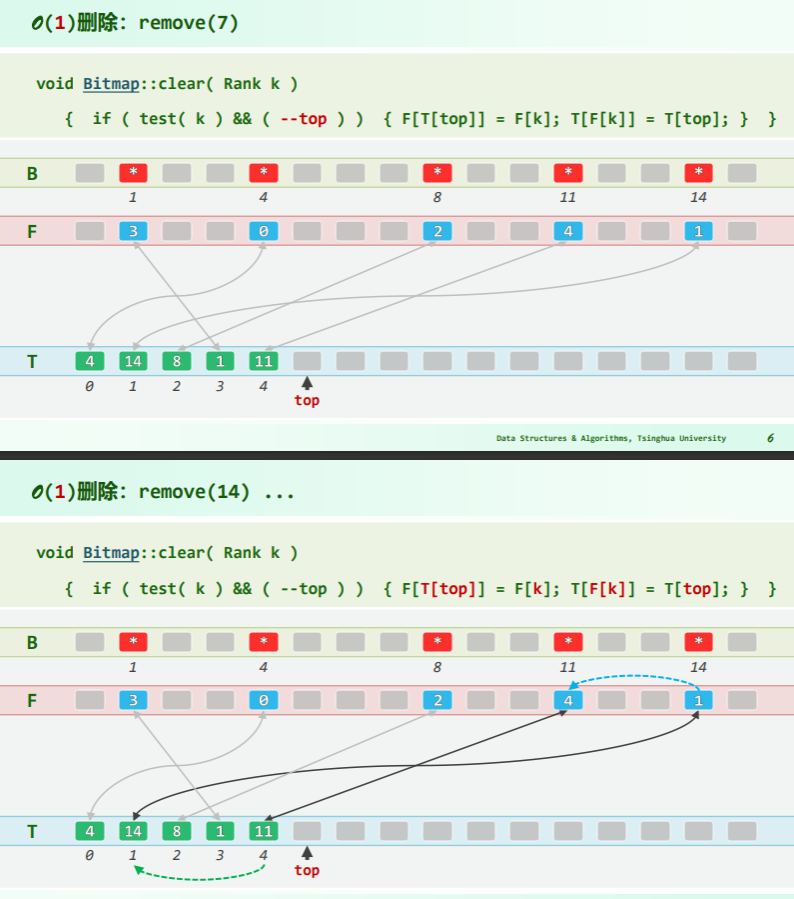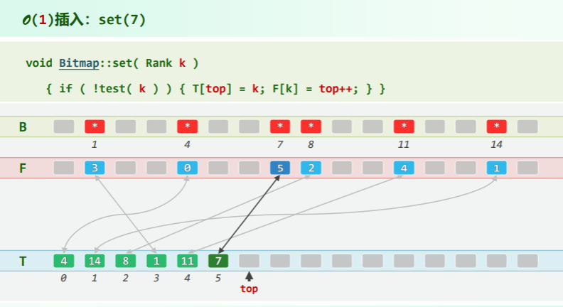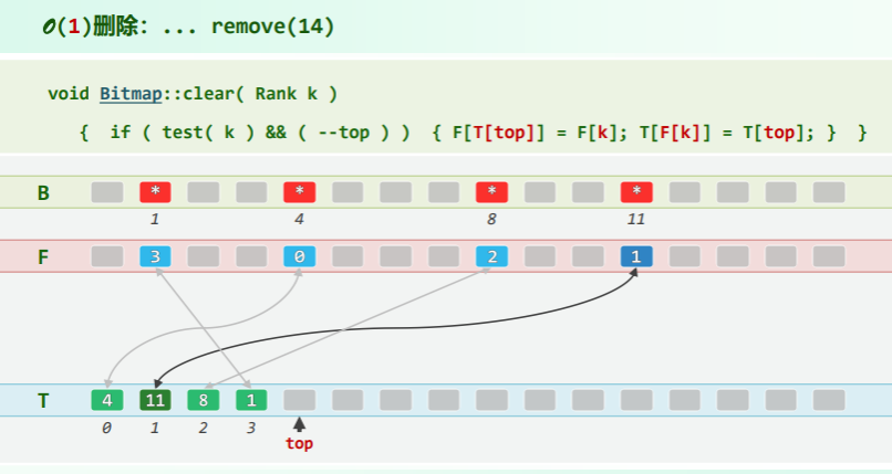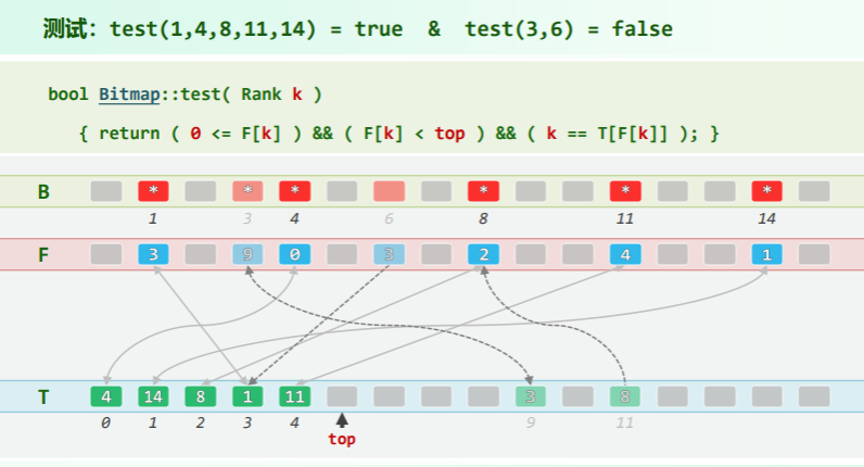将 B[] 拆分成一对等长向量,有效位均满足: T[F[k]] == k & F[T[i]] == i