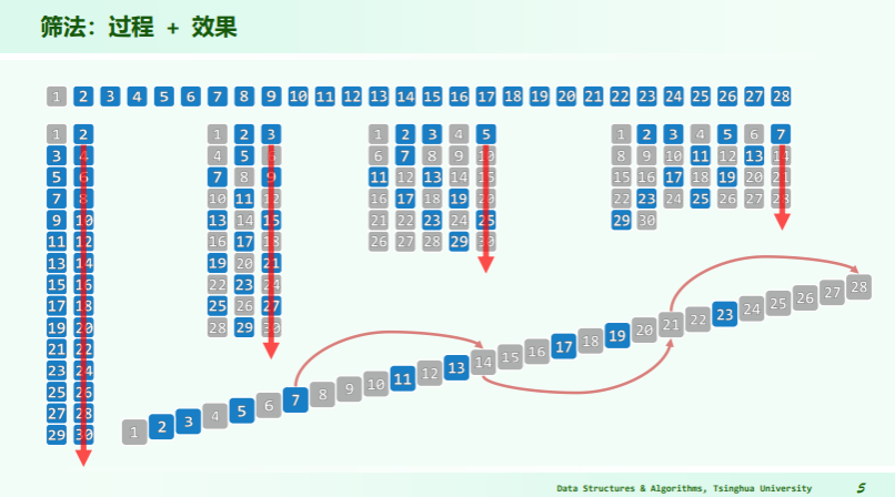 不计内循环,外循环自身每次仅一次加法、两次判断,累计 O (n) 内循环每趟迭代 O (n/i) 步,由素数定理外循环至多 n/lnn 趟,累计耗时