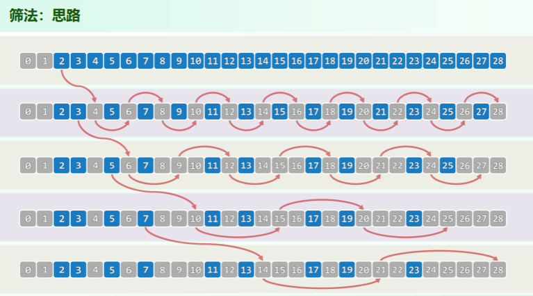 内循环的起点“2 * i”可改作“i * i”;外循环的终止条件“i < n”可改作“i * i < n” //为什么?
