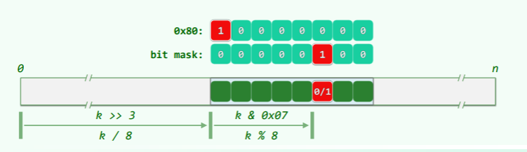 bool test ( int k ) { expand( k ); return M[ k >> 3 ] & ( 0x80 >> (k & 0x07) ); }