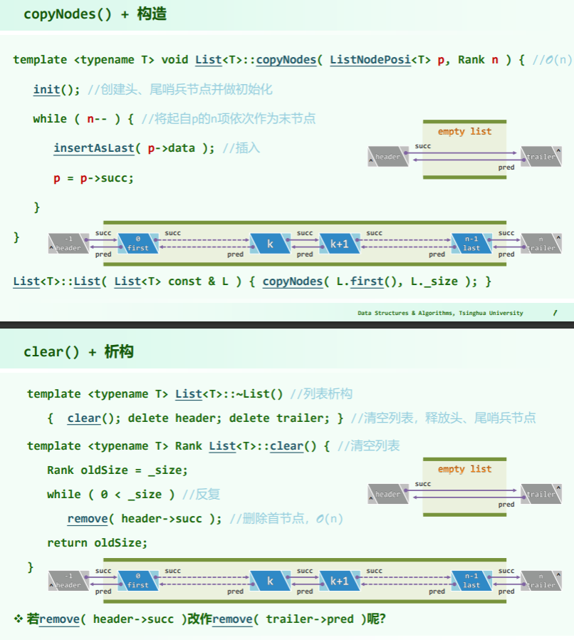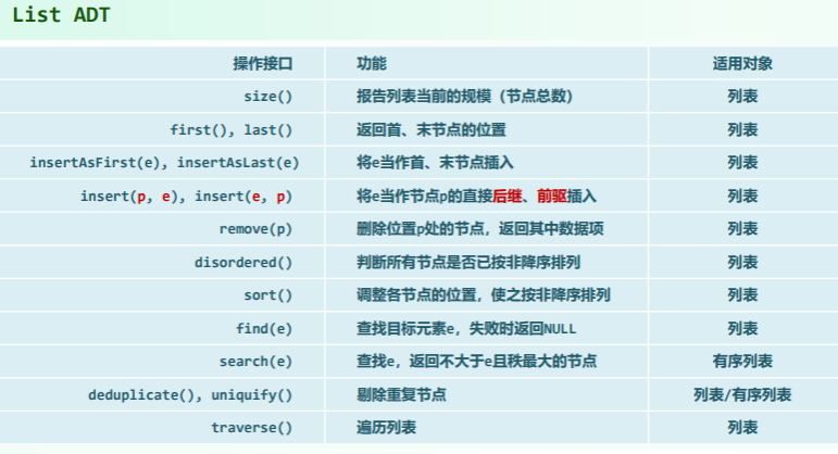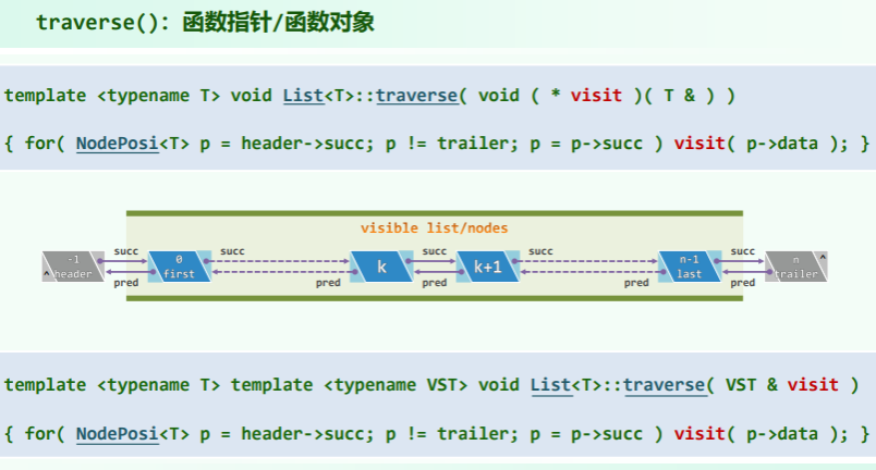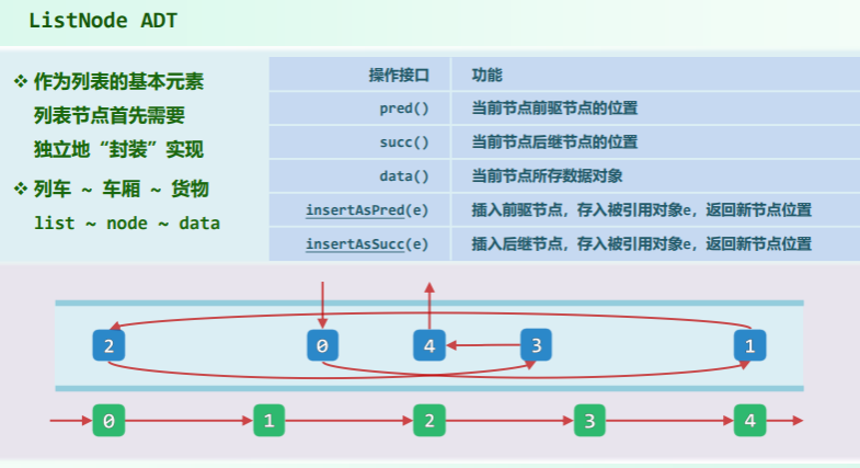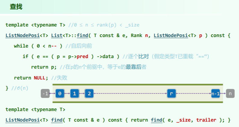 - 头节点的 order 设置为-1,尾节点的 order 设置为 n,都是哨兵,所谓 order 可以用以列表模拟 vector 的循秩访问,只是时间复杂度为 ;