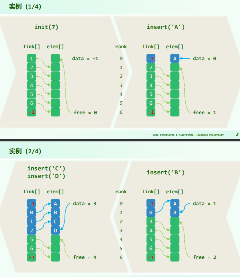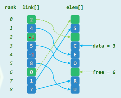 elem[]:对外可见的数据项link[]:数据项之间的引用
