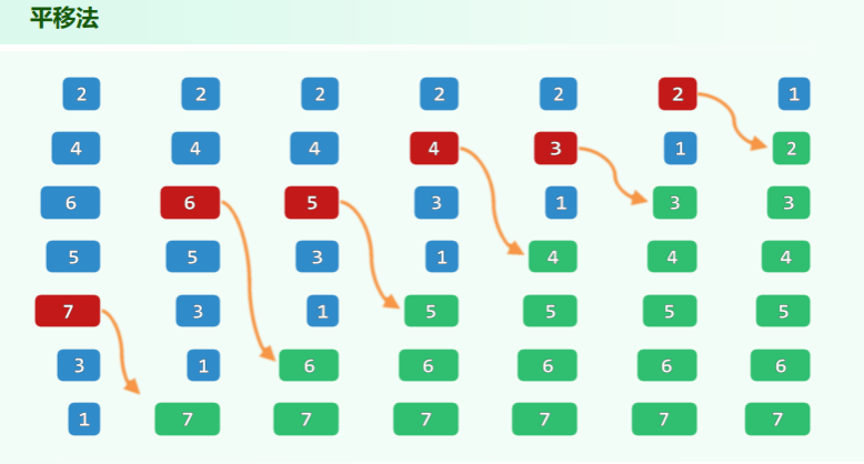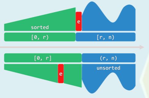 从未排序的区间中取一个元素,不失一般性就取区间开头,然后在已就序区间选择合适位置插入:
