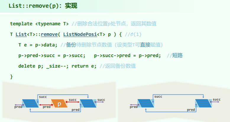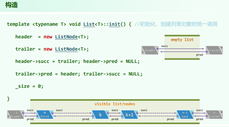 ListNode(T e, ListNodePosi<T> p = NULL, ListNodePosi<T> s = NULL): data(e), pred(p), succ(s) {} //默认构造器