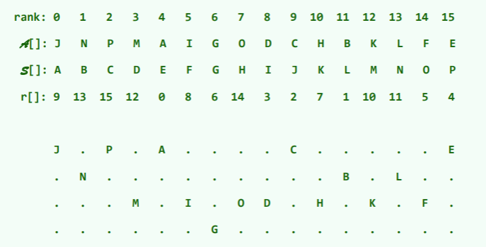 P → E → A → J → C → P(P 是 1 中的一个节点,故自身的循环节就是 1)- M → K → H → O → F → I → D → M