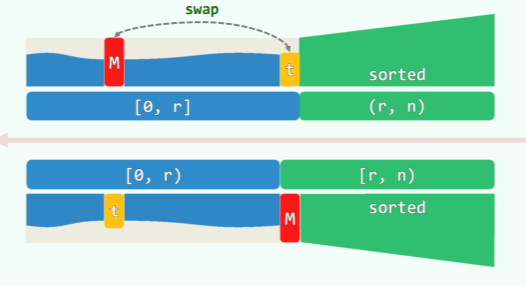 while ( 1 < n ) { //反复从(非平凡)待排序区间内找出最大者,并移至有序区间前端