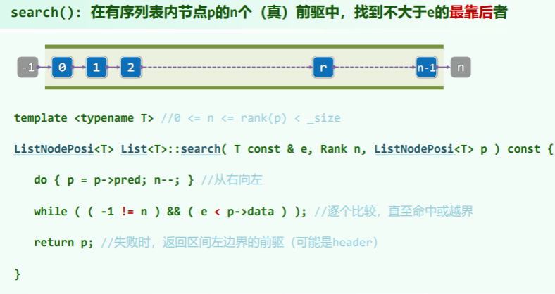 } //仅使用O(1)辅助空间,属于就地算法- 紧邻于 search ()接口返回的位置之后插入当前节点,总是保持有序