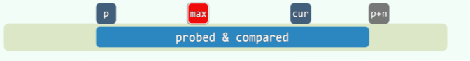 for ( ListNodePosi<T> cur = p; 1 < n; n-- ) //后续节点逐一与max比较