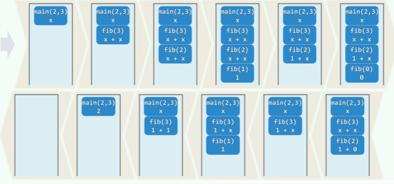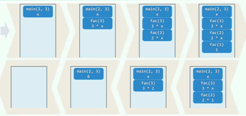 - 递归求 factorial 的最后一步是乘法与函数的自我调用。