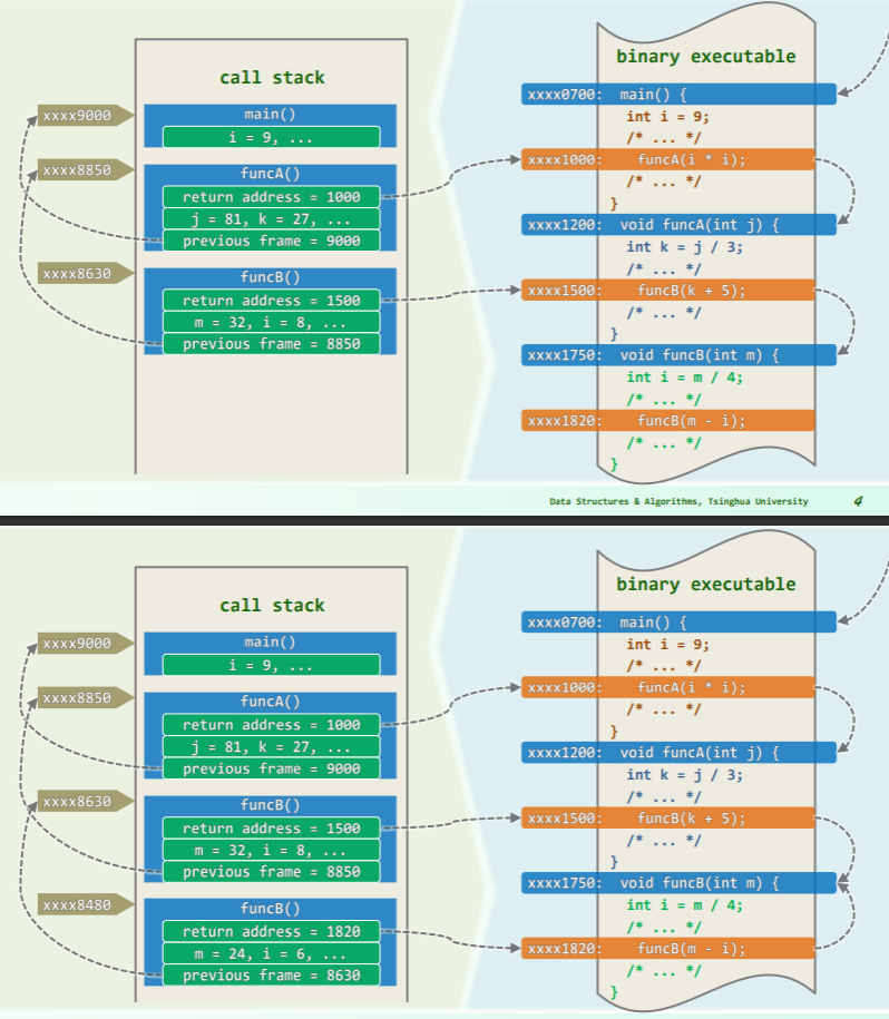 递归算法所需的空间,主要取决于递归深度,而非递归实例总数: