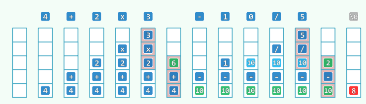 另外,运算的顺序与输出顺序相反——数位从低到高运算获得,但是输出却由高到低。这种相反的顺序非常符合栈的思想: