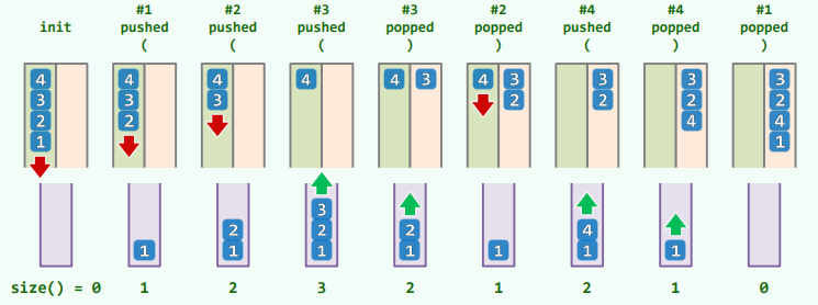 s[r] = S.empty() ? 0 : 1 + S.top();