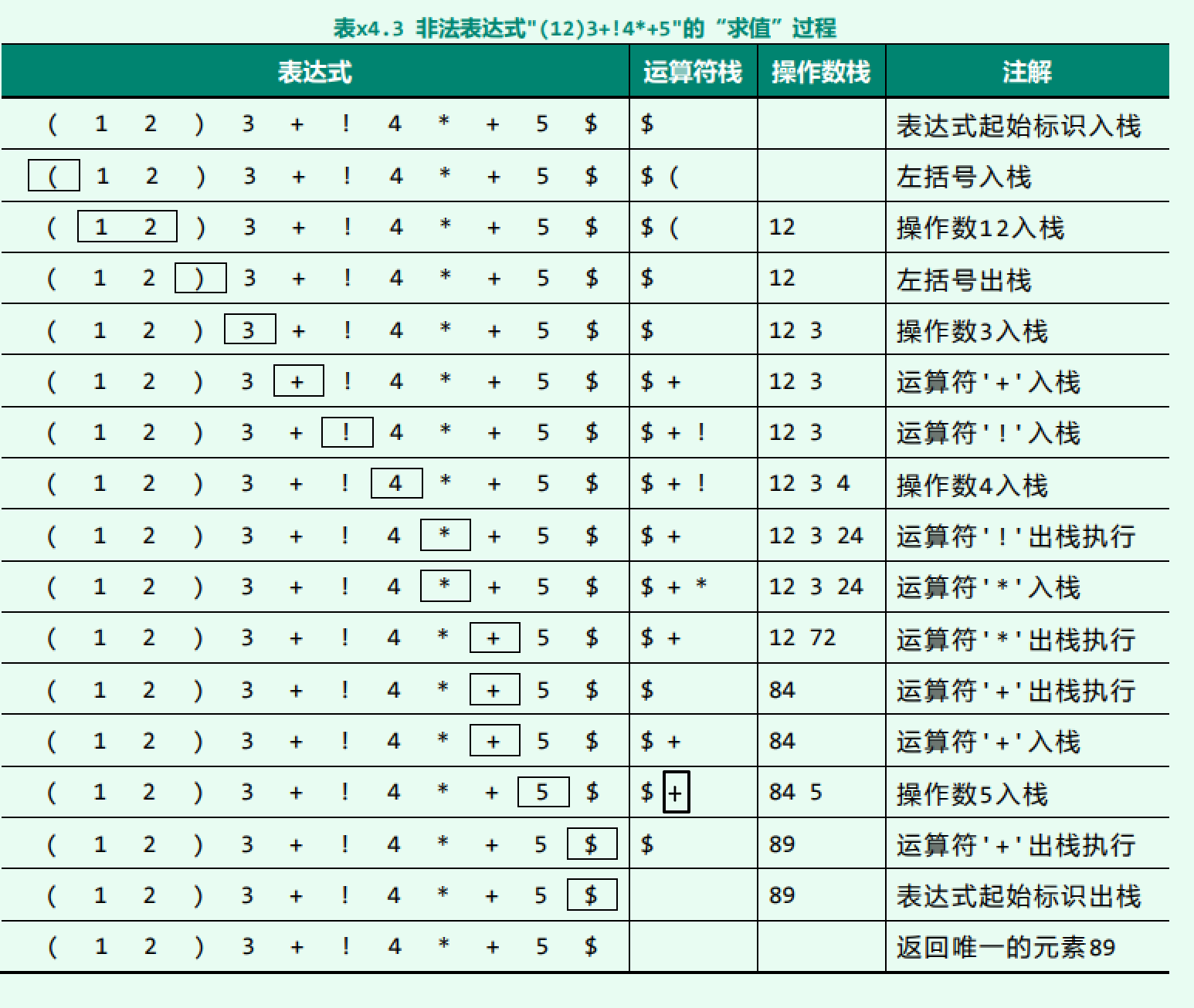 反观上例也可看出,巧合的原因在于,在该“表达式”的求值过程中,每当需要执行某一运 算时,在操作数栈中至少存有足够多操作数可供弹出并参与运算。