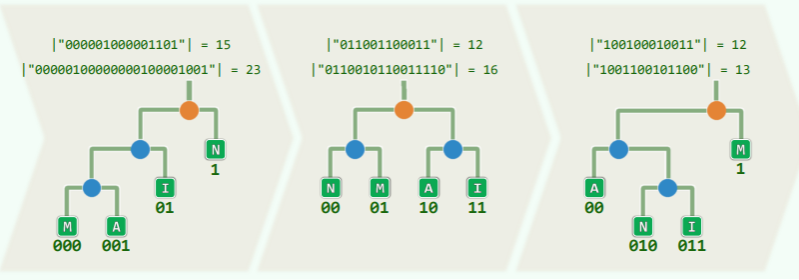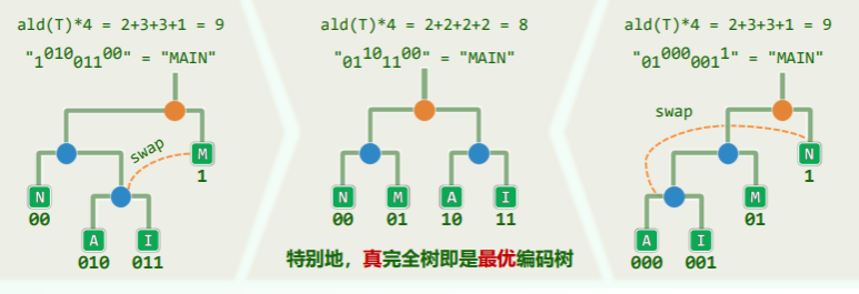 - 取出频率最低的两个节点,合并得到的新树插入队列 //O (logn) + O (logn)