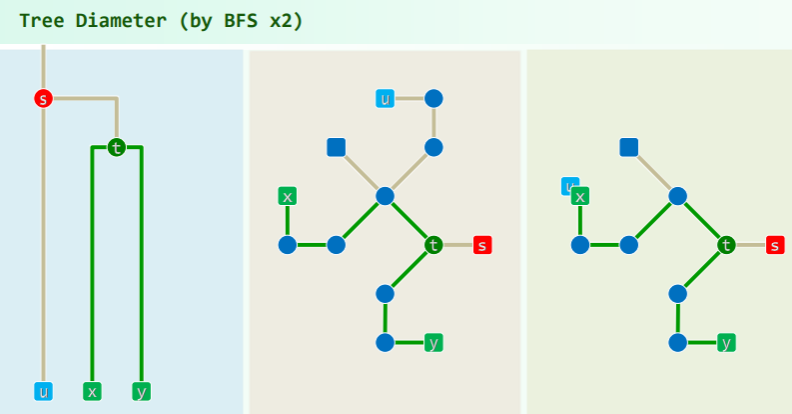 - 重新选择刚才找到的端点作为新的起始节点,再次进行 BFS。