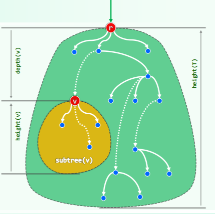 - 则 depth (v)+height (v)⇐height (T) (当且仅当 v 是最深路径上的节点时,取等号)