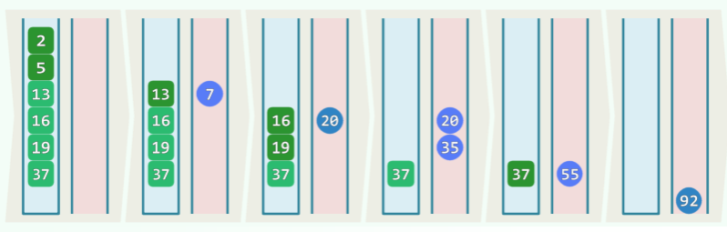 - 每次(从后端)取出频率最低的两个节点 //O (1)