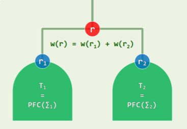 S->insert( HuffChar('^', T1->root()->data.weight + T2->root()->data.weight) );