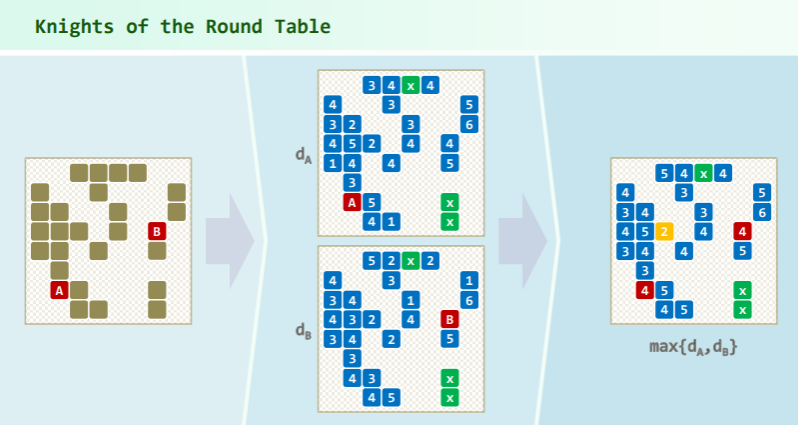 - 相互憎恨的两个骑士不能坐在相邻的两个位置。
