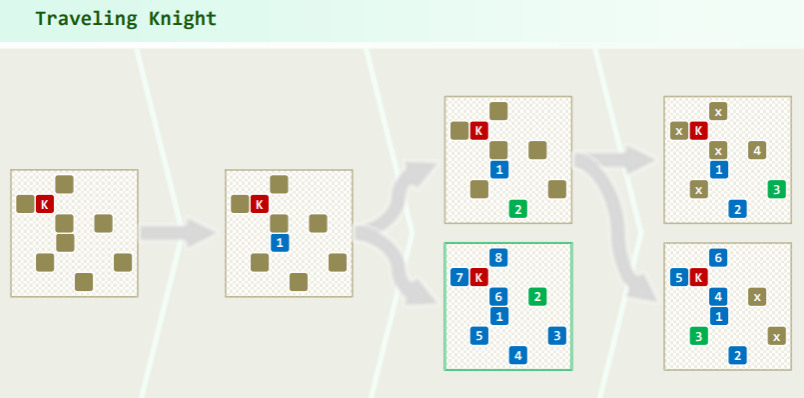 这个问题通常被用来考察图论和搜索算法的性能,它涉及到数据结构,特别是用于存储骑士在棋盘上移动的数据结构。通常,这个问题可以使用图或矩阵来建模,其中每个格子是一个节点,骑士的合法移动是边,然后可以使用深度优先搜索(DFS)或其他搜索算法来找到解决方案。