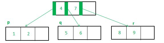- p, q and r must be made child keys of parent1 and parent2 (if ‘parent1’ and ‘parent2’ are the first two keys in the parent node), else p, q, r must be made the child keys of the key before parent 1, parent 1, and parent 2 respectively.