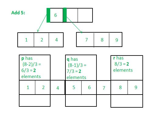 3 and 7 become the parent keys by the two-three splitInput : Add 5 to 2 3 4 L 6 R 8 9 11