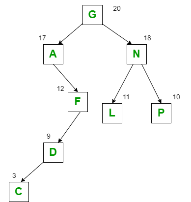 In the above diagram, the letters represent the node values and the numbers represent node weights.