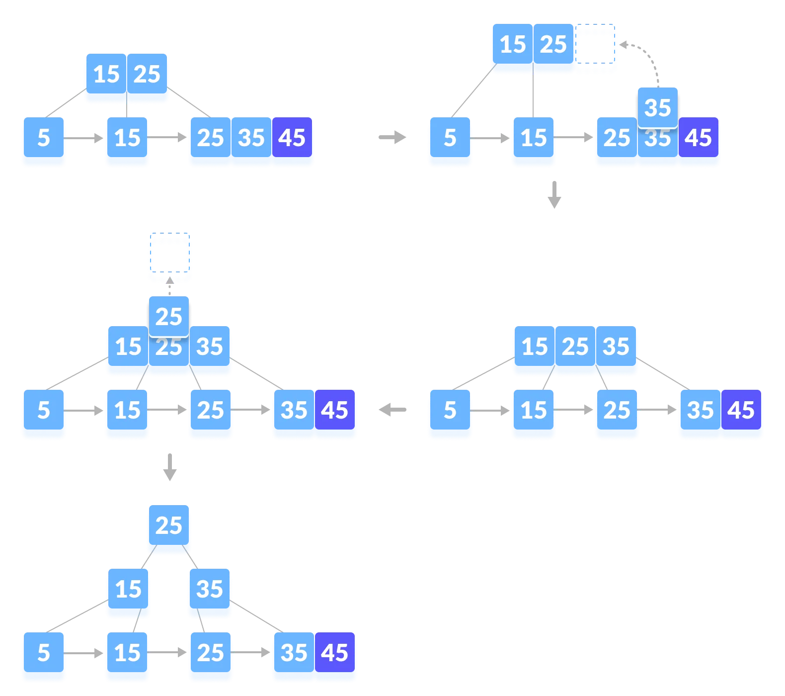 - If the leaf is not full, insert the key into the leaf node in increasing order.
