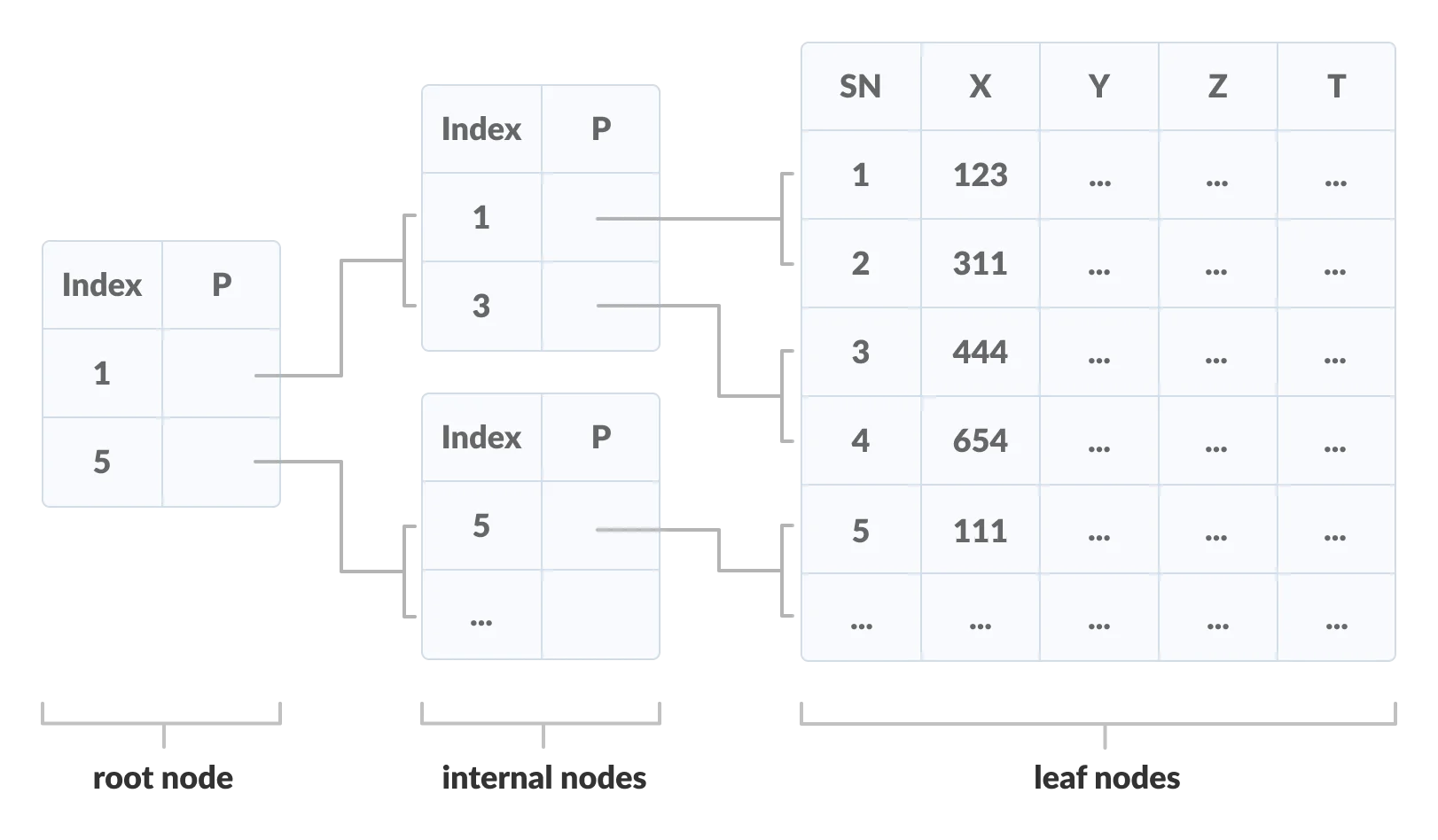 An important concept to be understood before learning B+ tree is multilevel indexing. In multilevel indexing, the index of indices is created as in figure below. It makes accessing the data easier and faster.