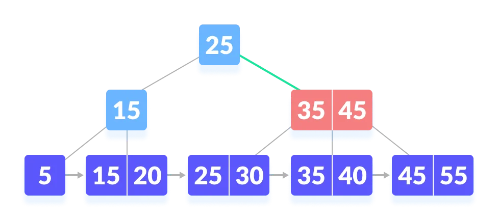 - Since every element is inserted into the leaf node, go to the appropriate leaf node.