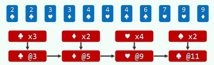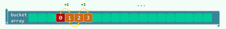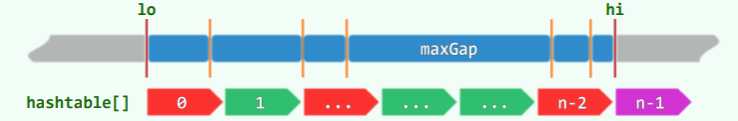 - Bucket array ~ Hashtable:容量 M (N<M<<R),使得空间复杂度 O (N+M)=O (2N+C)=O (N)