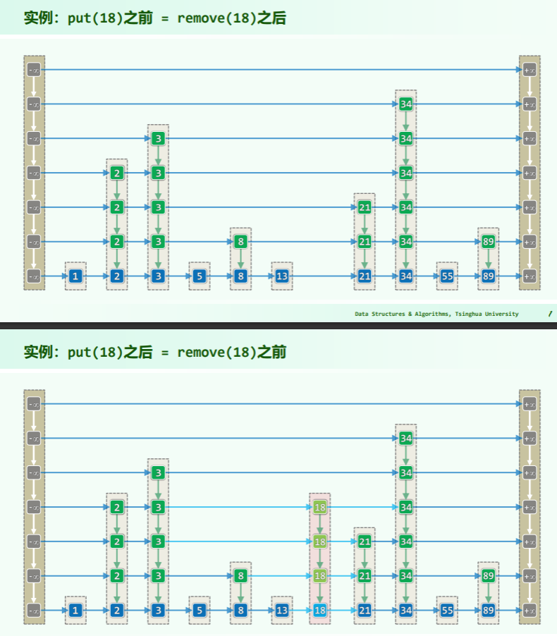 - 于是,跳转表的所需空间为 expected-O (n),不会因为塔高而显著影响空间复杂度