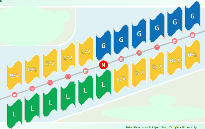 LinearSelect()寻找 n/Q 个中位数的中位数,记作 M ; - 将 A 划分为三个区段,分别是 L 段(