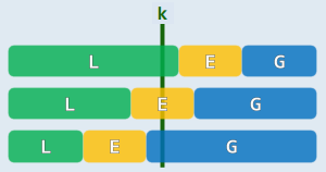 k <= |L+E+G|即该元素在 G 段,返回LinearSelect(G,k - |L| - |E|)