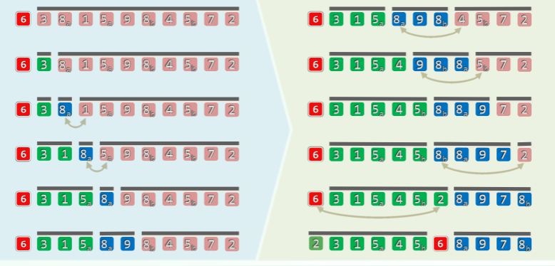 [0]) - 将序列划分为三段:L + U + G,分别是小于、未扫描到的、大于部分