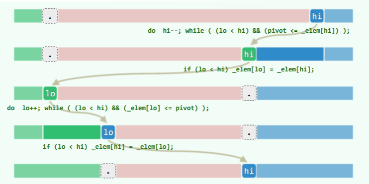 if ( lo < hi ) _elem[lo] = _elem[hi]; //阻挡者归入前缀L,即凡小于轴点者,归入L部分