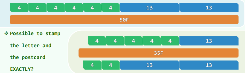 - 准备邮寄平信的你,可否用这两种邮票组合出对应的 50 分邮资?