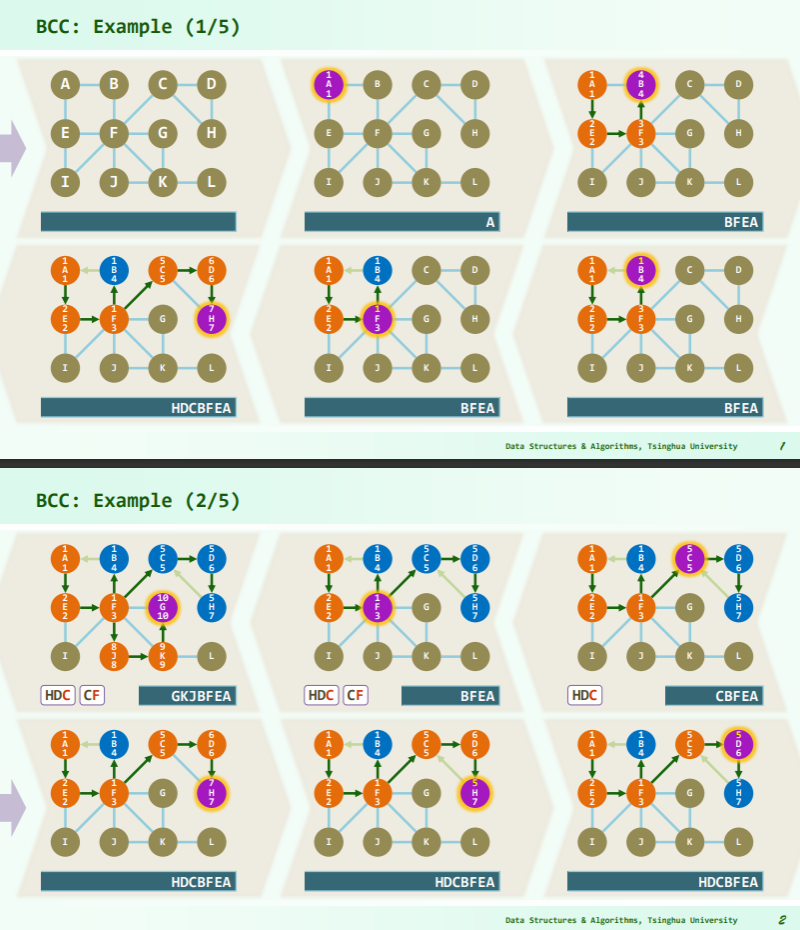 - 极大的双连通子图,称作双连通分量 (Bi-Connected Components, BCC)