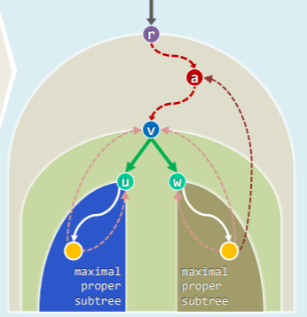 - 对内部节点 v,其有某个孩子 u,u 的子树不能经由 BACKWARD 边连接到 v 的任何真祖先 a(即取掉 v 也能通过 BACKWARD 连回到a):