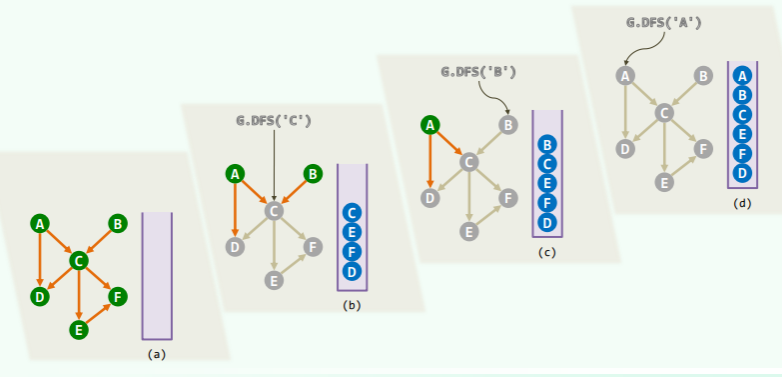 - DFS 结束后,顺序弹出 S 中的各个顶点