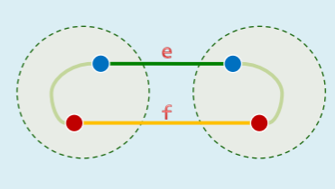 - 否则,T+e 一定存在一个环,考虑这个环上不属于 F 的另一条边 f(一定只有一条)。