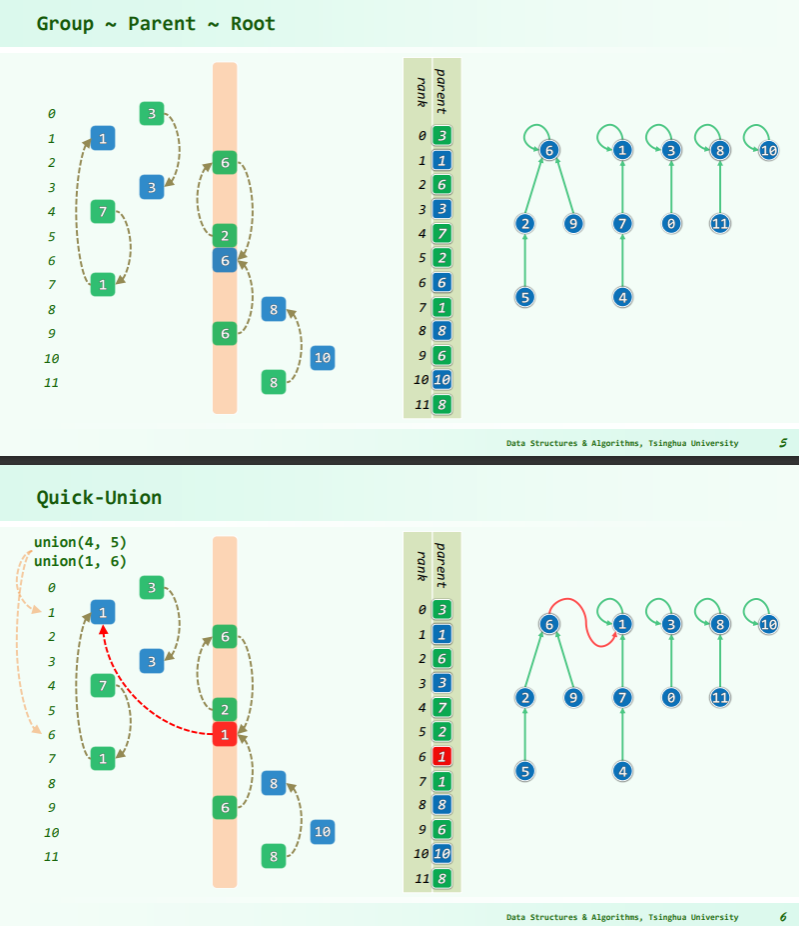 抽象一点地说,维护一堆 集合,查询两个元素是否属于同一集合,合并两个集合。