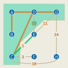 - 根据代价,从小到大依次尝试各边,只要“安全”——次短即可,就加入该边