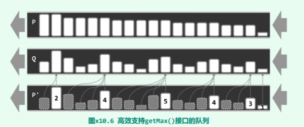习题10-19 针对栈结构的技巧,可以推广至队列结构。比如,可以引入一个双端队列 P 并依然约定,其中每个元素也是始终指向队列 Q 中所有其前驱中的最大者。