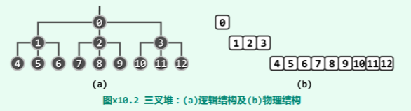 比如在图 x10.2所示的三叉堆中,8号元素的父亲对应的秩为:parent(8) = = 2