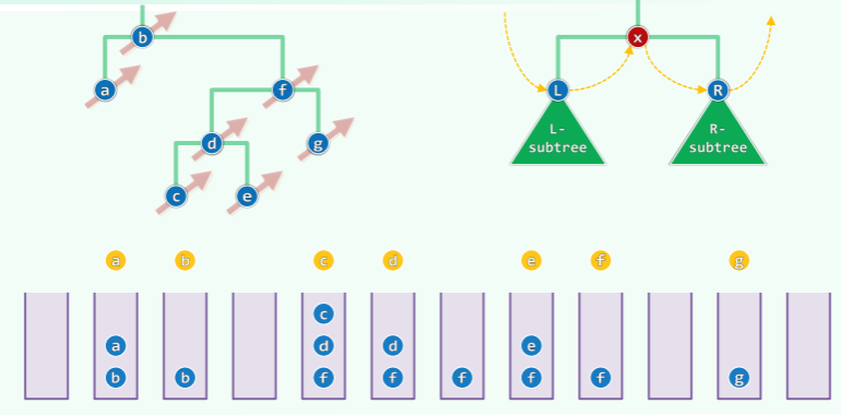 • 再逆转方向,自下而上遍历各右子树,各右子树的遍历彼此递归地、独立地自成子任务;