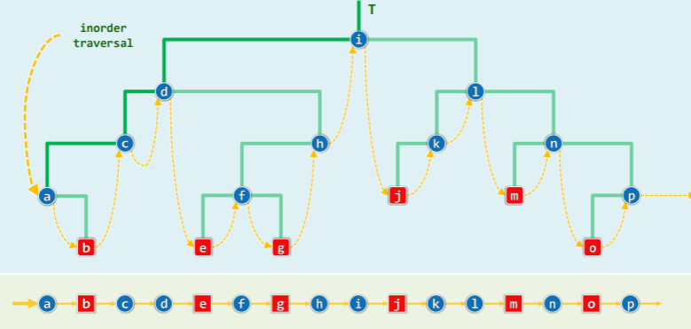 void travIn_I3( BinNodePosi<T> x, VST& visit ) { //二叉树中序遍历算法(迭代版#3,无需辅助栈)