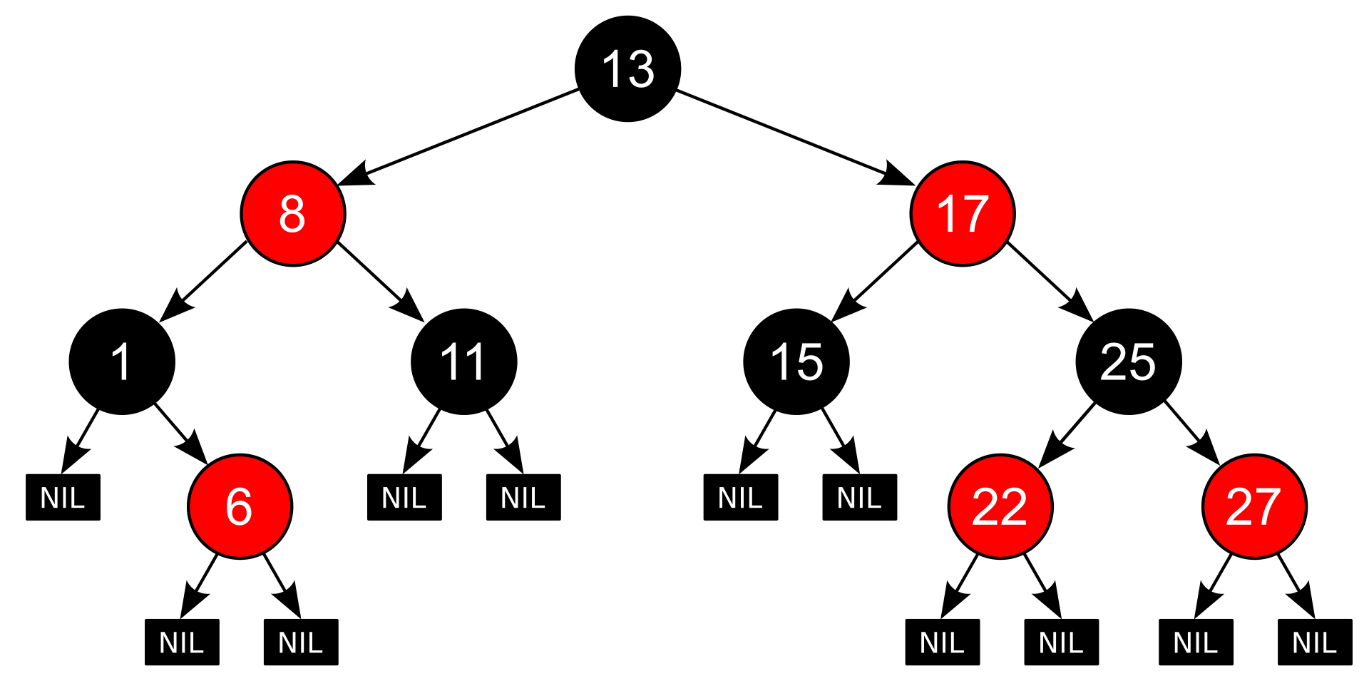 • 红节点的黑高度和黑深度定义与上述相同,但要注意,即使不将自身计入计数中,它自己作为红节点对通路上的黑节点数是没有贡献的,因此黑深度与黑高度之和相当于根到外部节点上黑节点的总数;